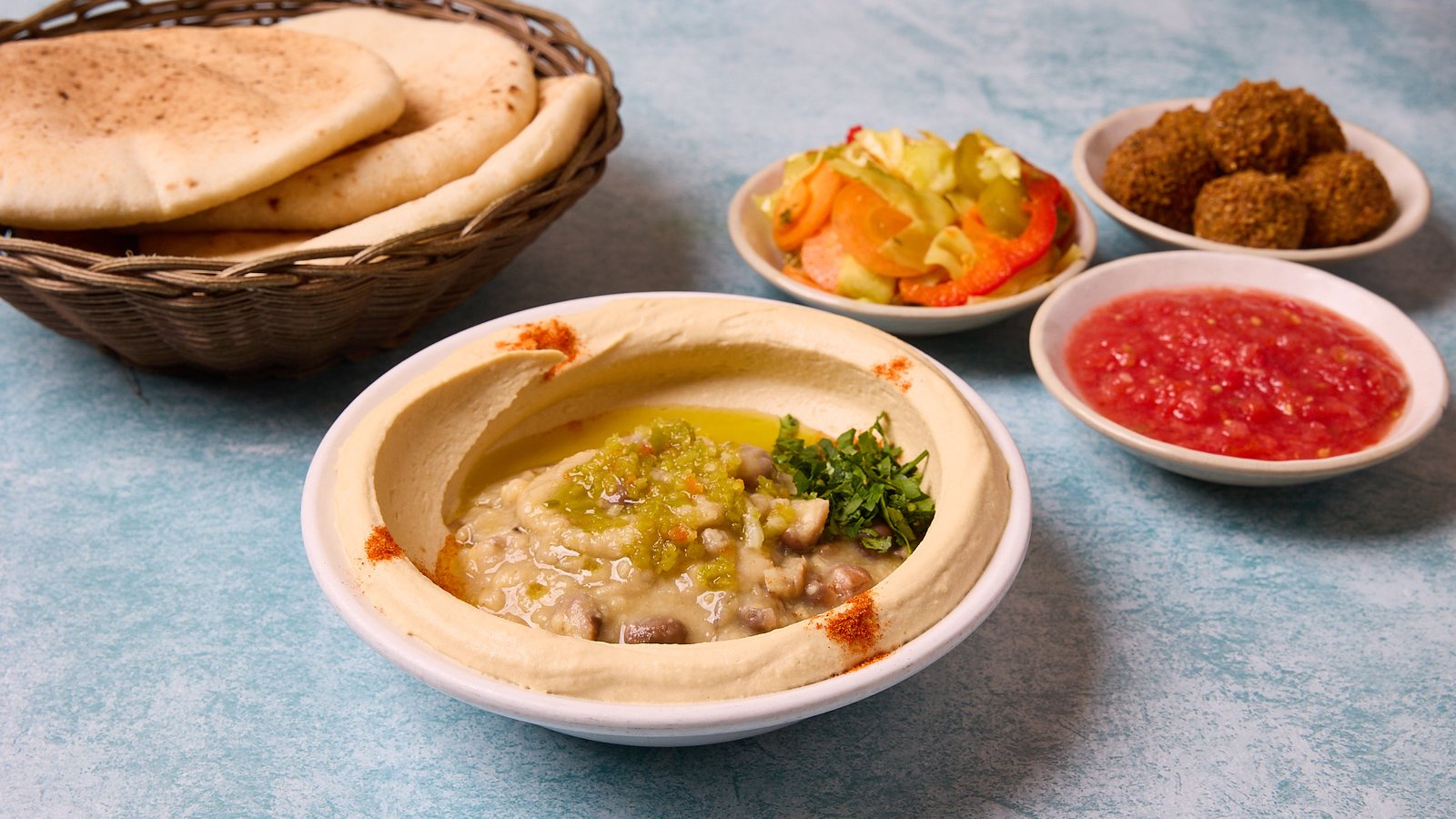 ثلث مسبحة/ثلث فول/ثلث حمصاضافة بيضة مسلوقة 3₪