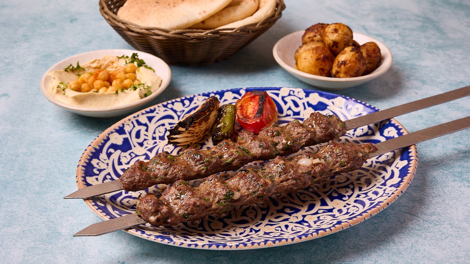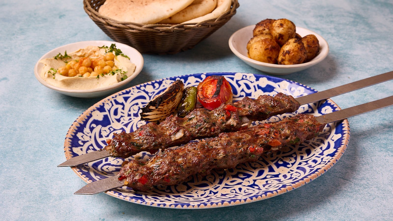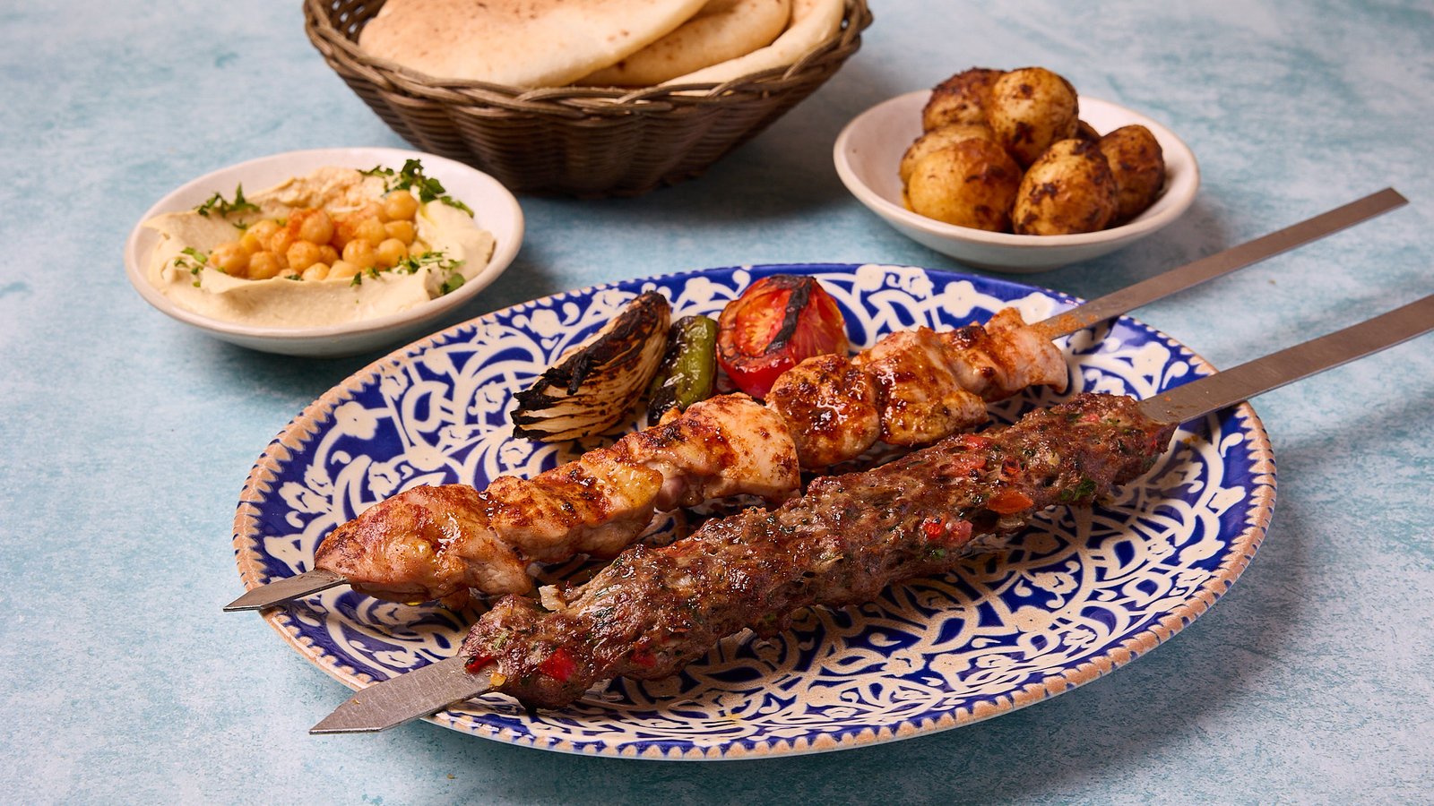 مشوي على الفحم, لحم عجل، لحم خروف، بقدونس وبصلطبق جانبي حسب الاختيار: بطاطا مقلية/سلطة/مقلوبة/بطاطا بالفرن