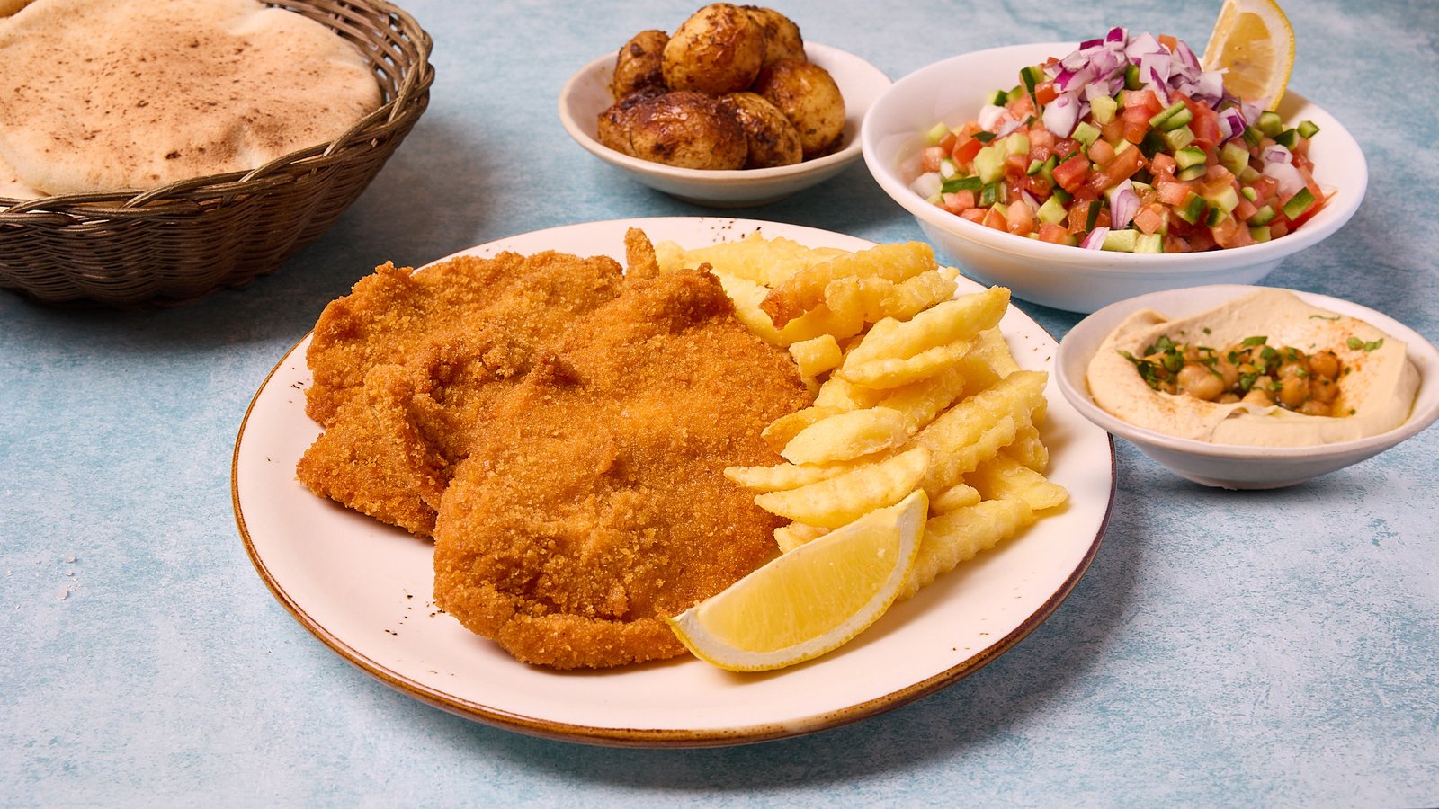 مشوي على الفحم, طبق جانبي حسب الاختيار: بطاطا مقلية/سلطة/مقلوبة/بطاطا بالفرن
